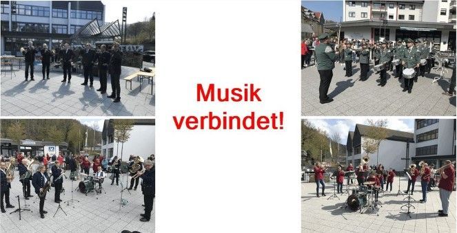 unter dem Motto "Musik verbindet" findet am Sonntag , 28.04.2024 auf dem Rathausplatz in Schalksmühle von 11.00 - 14.00 Uhr zum 3. Mal ein gemütlicher Frühschoppen statt.